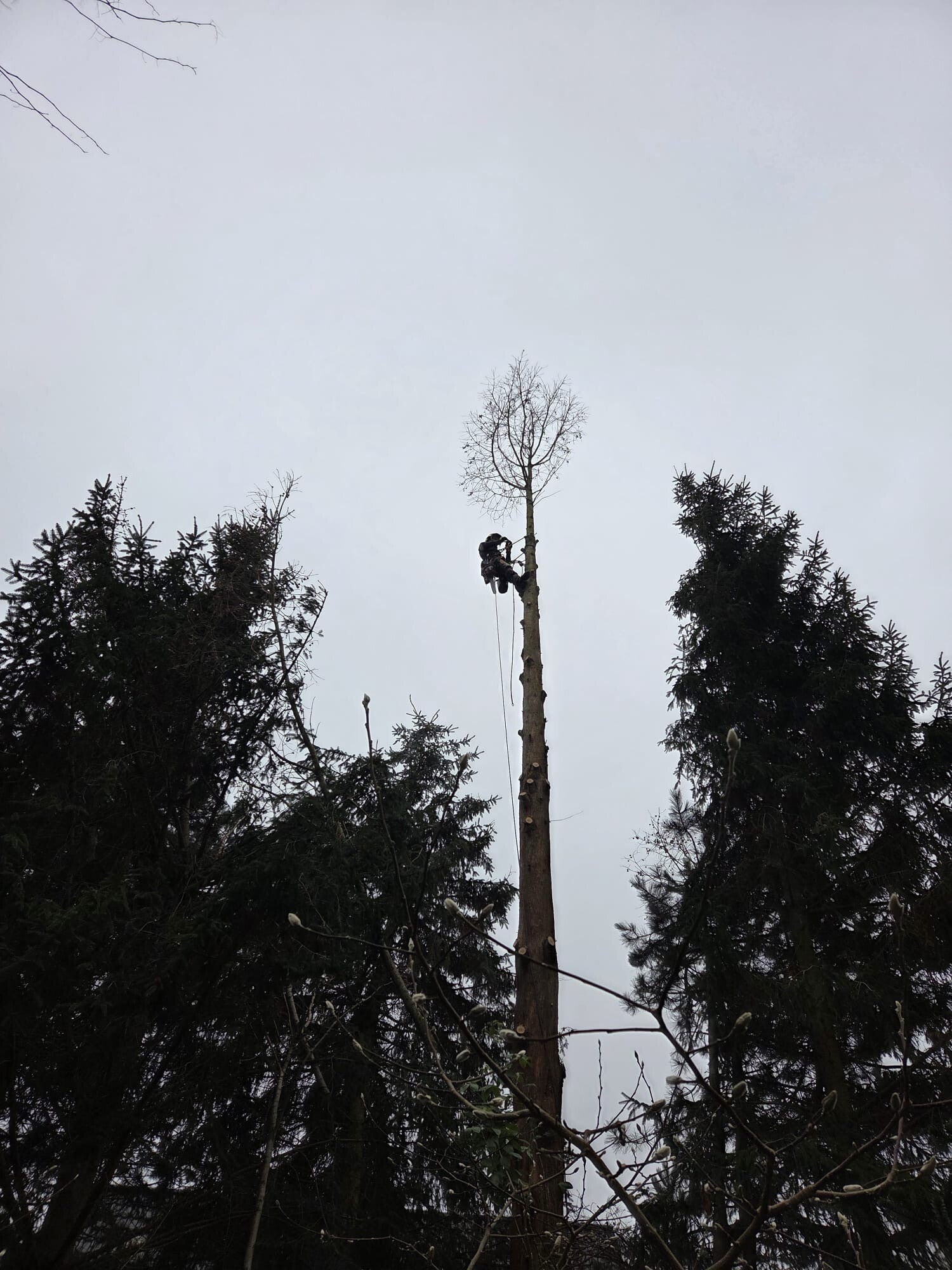 Kein Baum ist zu groß, zu weit oder zu dick, mittels professionell ausgeübter Klettertechnik und Fallarbeiten können wir jeden Baum sicher herunternehmen..